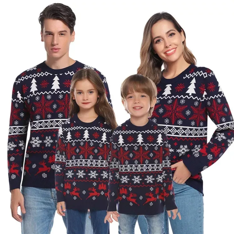 Оптовая Рождественский Свитер Пользовательский Жаккардовый Дизайн Унисекс Рождественский Свитер Семейный Трикотаж Набор Уродливый Рождественский Свитер