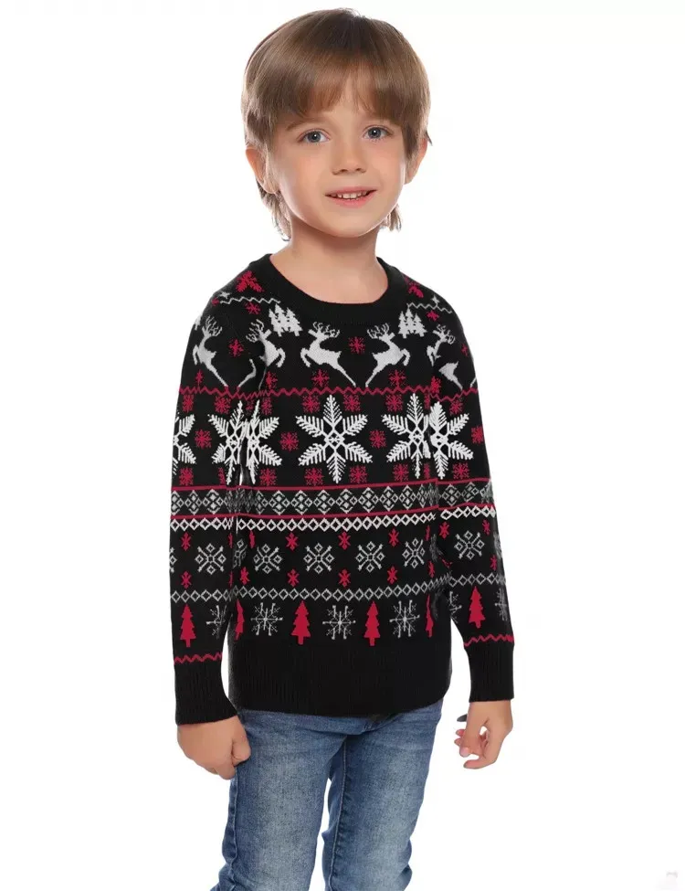 Рождественский свитер с жаккардовым дизайном, унисекс, семейный трикотажный комплект, свитер