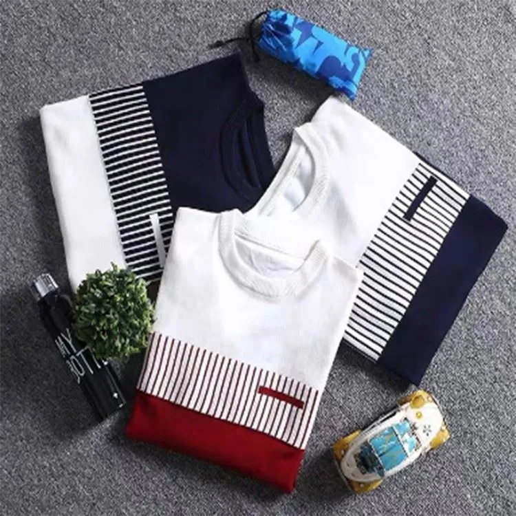 Spring and autumn striped round neck men's sweater is a new product of our company in the current season. It is designed with fashion story and slim fit. It is comfortable to wear, move freely and have both fashion and comfort.